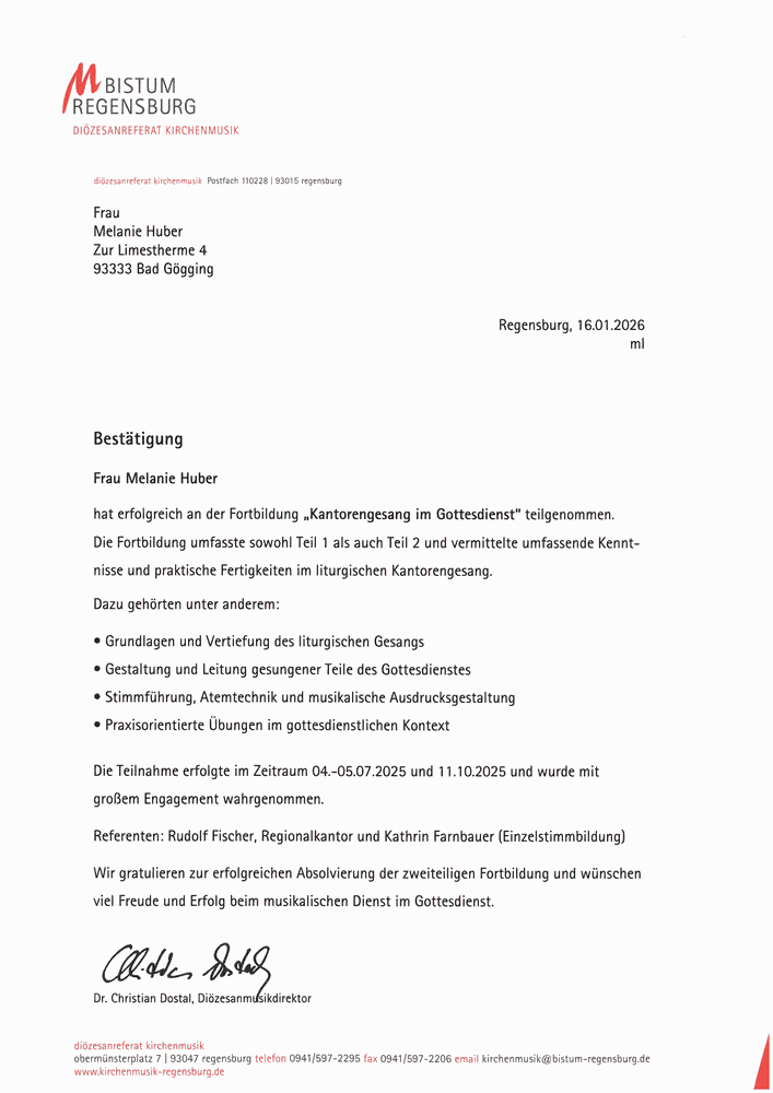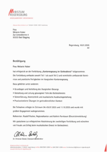 Qualifizierung Hier könnt ihr sehen, dass wir immer bemüht sind uns weiterzubilden. Über die Urkunde von Pater Alex, die er uns anlässlich unseres 25jährigen Chorjubiläum im Rahmen des Konzertes überreicht hat, freuen wir uns besonders.